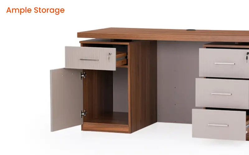 The Royaloak Genting Malaysian Office Table 1.4M is a versatile and stylish piece of office furniture designed to enhance productivity and comfort. Crafted from engineered wood with a sleek melamine finish, this table offers ample storage space with a convenient drawer and telescopic channel. Soft closure hinges provide a quiet and smooth closing experience, ensuring a peaceful working environment. The table's spacious leg room and wire manager keep your workspace organized and clutter-free, promoting a more efficient and enjoyable work experience. With its sturdy construction and long-lasting materials, this office table is built to withstand the demands of daily use, making it a reliable and valuable investment for your home or office. Buy stylish office desktop tables from Royaloak today, and enjoy the benefits of owning international furniture from India’s no.1 furniture brand. Malaysia, a culture-rich country, is popular for its high fashion and abundant resources. Due to its balanced climate, the wood from Malaysia stands a notch above the rest. Royaloak brings you the most modern compact designs that are functionally brilliant, aesthetically superior and will complement contemporary interiors.