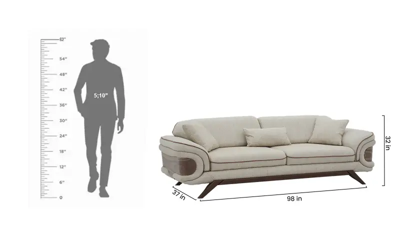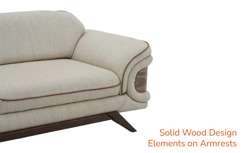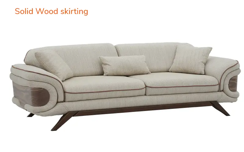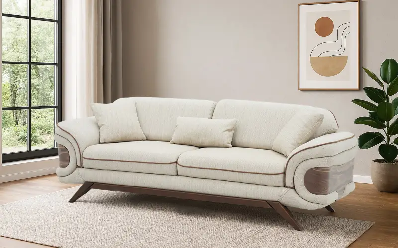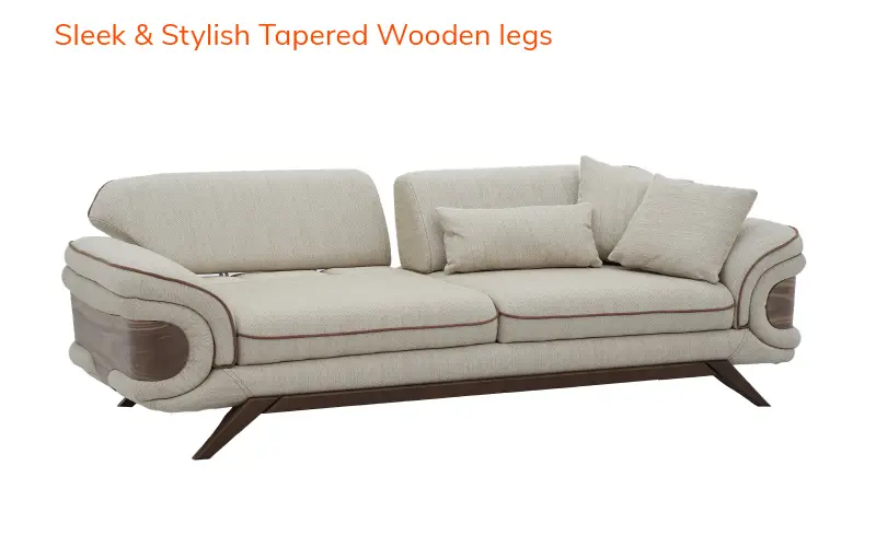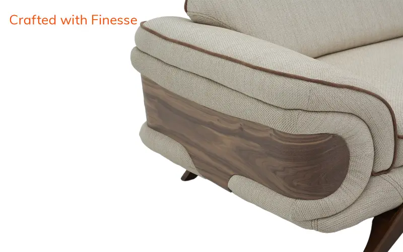 Add a refined touch to your interiors with this Royaloak Lisbon 3 Seater Sofa. Upholstered in super-soft fabric that's rich to the touch and adds a plush, inviting feel to your room, its dual-color luxurious upholstery boosts its aesthetic appeal and makes it blend with all sorts of interior designs. The sofa has a solid wood skirting base, providing long-lasting durability and visual enhancement. Stylish and modern tapered wooden legs further support the solid base for a solid foundation. Wrapped in super-soft dual-color fabric, this sofa 3 seater provides the ultimate seating experience that's both beautiful and supremely relaxing. Texture and tone contrast bring depth, while high-resilience foam provides maximum comfort, conforming to your body and cushioning where needed most. The tufted backrest, engineered with lumbar support in mind, forms a supportive nest for your back. This ergonomic design promotes a healthy posture, making it an ideal selection for extended sitting periods, whether reading a novel, having coffee, or hosting visitors. Buy three seater sofa from Royaloak today, and enjoy the benefits of owning international furniture from India’s no.1 furniture brand.
