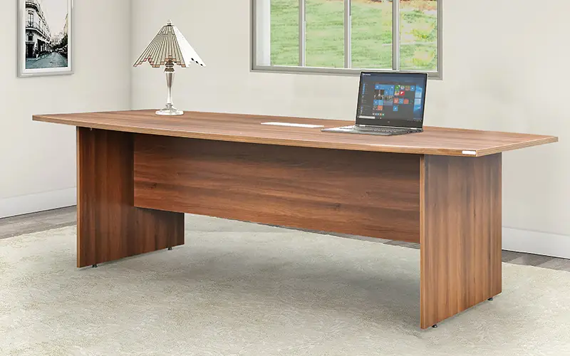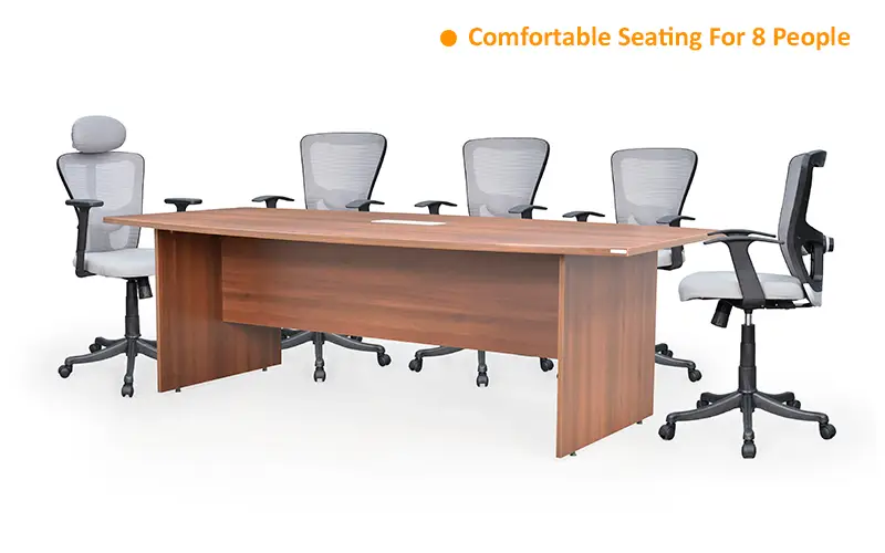 Royaloak Penang Malaysian Conference Table in Melamine Finish, a fusion of functionality and aesthetics designed to elevate your conference room experience. Crafted with precision using high-quality engineered wood, this table exudes durability and sturdiness, ensuring long-lasting performance. The sleek Melamine Finish adds a touch of elegance and enhances the table's resistance to scratches and stains, maintaining its pristine appearance for years to come. With ample space to comfortably seat 8 people, this designer wooden conference table fosters a collaborative atmosphere for productive meetings. It can be used as a desktop table or an office desk. This modern conference table has a contemporary design that blends seamlessly with any modern office decor, while proudly being a part of our exquisite Malaysian Collection, showcasing the finest craftsmanship and attention to detail. Elevate your conference room ambiance with the Royaloak Penang Malaysian Conference Table, a symbol of refined sophistication and functionality. Buy designer conference tables from Royaloak today and enjoy the benefits of owning international furniture from India’s no. 1 brand. Malaysia, a culture-rich country, is popular for its high fashion and abundant resources. Due to its balanced climate, the wood from Malaysia stands a notch above the rest. Royaloak brings you most-modern compact designs that are functionally brilliant, aesthetically superior and will complement contemporary interiors.