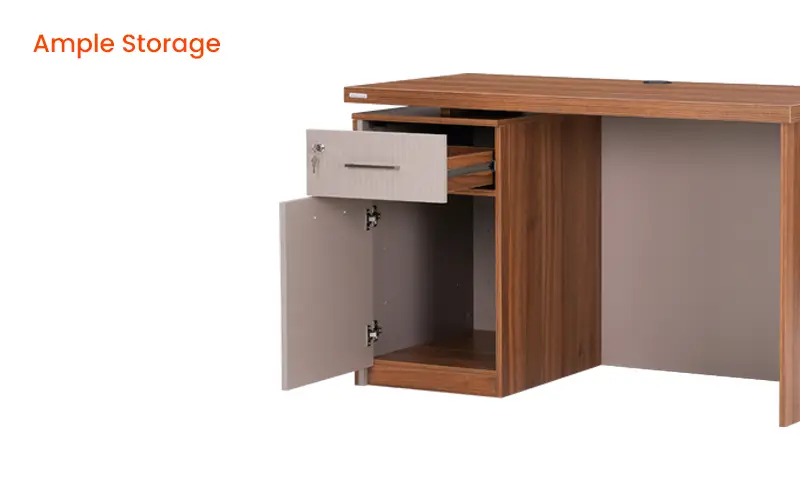 The Royaloak Genting Malaysian Office Table 1.2M is a versatile and stylish piece of office furniture designed to enhance productivity and comfort. Crafted from engineered wood with a sleek melamine finish, this table offers ample storage space with a convenient drawer and telescopic channel. Soft closure hinges provide a quiet and smooth closing experience, ensuring a peaceful working environment. The table's spacious leg room and wire manager keep your workspace organized and clutter-free, promoting a more efficient and enjoyable work experience. With its sturdy construction and long-lasting materials, this office table is built to withstand the demands of daily use, making it a reliable and valuable investment for your home or office. Buy stylish office desktop tables from Royaloak today, and enjoy the benefits of owning international furniture from India’s no.1 furniture brand. Malaysia, a culture-rich country, is popular for its high fashion and abundant resources. Due to its balanced climate, the wood from Malaysia stands a notch above the rest. Royaloak brings you the most modern compact designs that are functionally brilliant, aesthetically superior and will complement contemporary interiors.