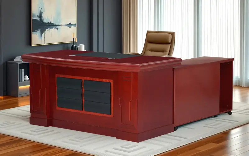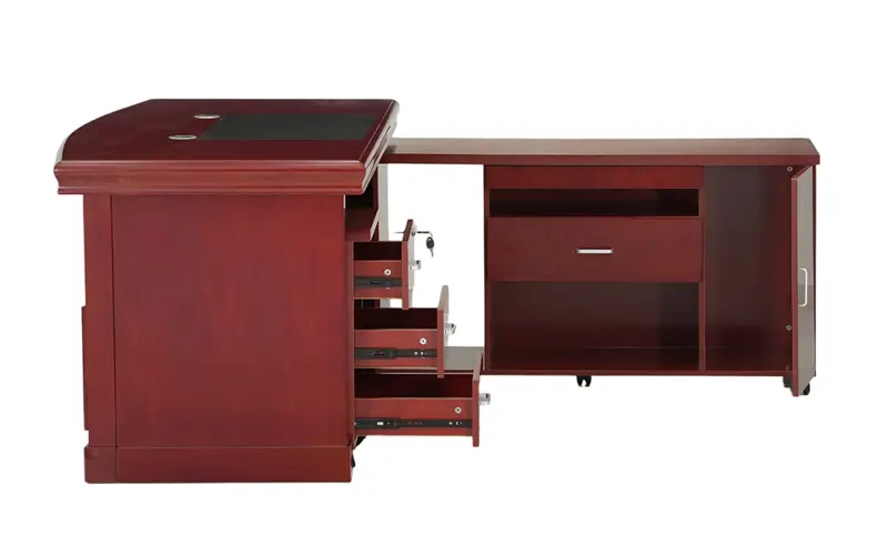 Elevate your office space with the sophisticated and functional Royaloak Texas American Veneer Office Table 1.6M. Crafted from engineered wood with a sleek veneer finish, this table provides durability and elegance. It features ample storage with spacious drawers and compartments to keep your office organized, while the generous legroom ensures comfort during long working hours. Equipped with a wire manager, the engineered wood computer table keeps your cables well organized, and the air vent feature enhances ventilation so that your workspace is always cool. The laptop grip ensures that all your devices are held securely and offers convenience and stability to the desk setup. This spacious legroom office computer table is part of the Royaloak American Collection, combining ideal design with practical features in a contemporary office table. Buy computer office table with ample storage from Royaloak today and enjoy the benefits of owning international furniture from India’s no. 1 brand. United States of America, a country that’s always ahead of the times, inspires the world with its vibrant and larger-than-life character. Royaloak American collection is an ode to the nation’s spirit – featuring a range of handpicked pieces of furniture that are big on build quality, style and finish. After all, America is where global trends begin.