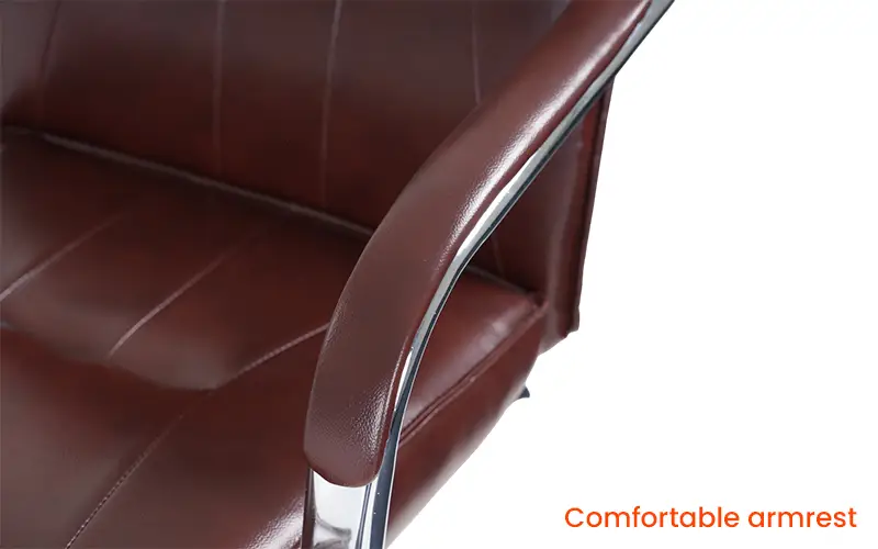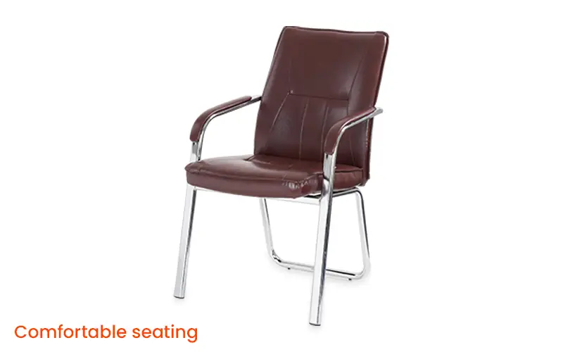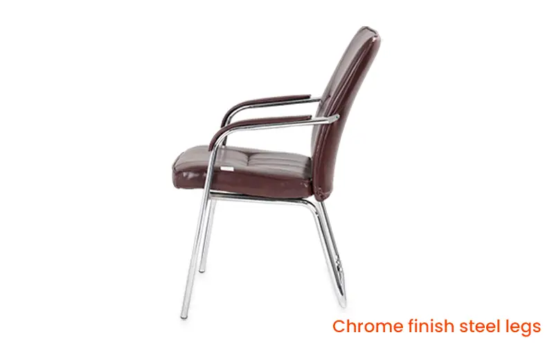 Introducing Royaloak Texas American Leatherette Visitor Chair, a blend of style and comfort for your office or reception area. Crafted with premium leatherette, this chair offers a sleek and professional look while ensuring durability. Experience optimal support with its high back design and enjoy added comfort with the padded armrests and plush seating. The chrome-finished steel legs not only provide stability but also add a touch of elegance to any space. Elevate your guest's experience with the Royaloak Texas Visitor Chair, where every detail is crafted for comfort and style. Buy ergonomic visitor chairs from Royaloak today and enjoy the benefits of owning international furniture from India’s no. 1 brand. United States of America, a country that’s always ahead of the times, inspires the world with its vibrant and larger-than-life character. Royaloak American collection is an ode to the nation’s spirit – featuring a range of handpicked pieces of furniture that are big on build quality, style and finish. After all, America is where global trends begin.